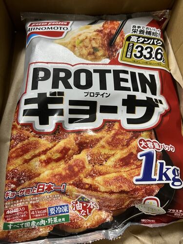 Amazon限定で売っている 味の素のプロテインギョーザが届きました。 実は7月にも買っていたけど、 届いたのはなぜか普通の味の素冷凍餃子でした。 一時期、販売画面からも無くなっていて 久しぶりに見たら再販されていたのでポチった。 1個あたりの数字は …